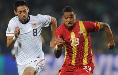 ההגנה של ארה"ב, שלא היתה טובה לכל אורך הטורניר, שוב פישלה בדקות הראשונות ואיפשרה לגאנה להשתלט על המשחק כבר מהפתיחה. לחץ קליל על מרכז השדה הביא לאיבוד כדור ושער יפהפה של קווין פרינס בואטנג, אותו אחד שאף אחד בגרמניה לא רצה. אותו אחד שאפילו לא ידע אם פיפ"א תאשר לו לשחק עם המדינה בה נולד אביו, עד שבועיים לפני המונדיאל.