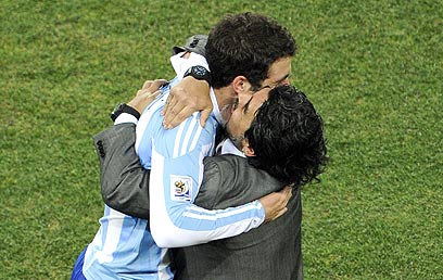 מראדונה והיגוואין מגלים חיבה ביוהנסבורג (AFP)