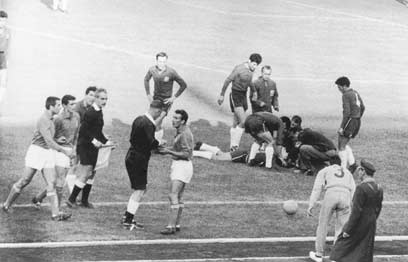 המשחק הופסק עוד שלוש פעמים במהלך המחצית השנייה, ושוטרים נכנסו למגרש כדי להפריד בין השחקנים. השופט האנגלי אסטון איבד שליטה על המתרחש, והתפלל שהקרב יסתיים. בסוף זה קרה: צ'ילה ניצחה 0:2, אבל האוהדים המקומיים לא ויתרו ורגמו באבנים את מחנה האימונים של הנבחרת האיטלקית.