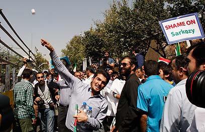 הפגנה מול שגרירות צרפת בטהרן: סרקוזי, תתבייש