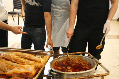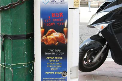 עשרות מנות מחולקות חינם למיעוטי יכולת. השלט המוכר על העוף לשבת