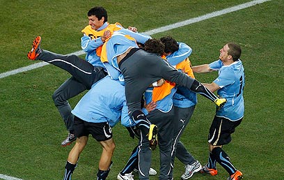 אורוגוואי בשיגעון מוחלט. אחרי שהנבחרת המקומית העפילה לחצי גמר המונדיאל, בעקבות הניצחון בפנדלים על גאנה אחרי 1:1 בתום 120 דקות, יצאו האוהדים לחגוג ברחובות מונטווידיאו ואתרי האינטרנט הפציצו כותרות.