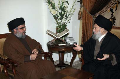 המורה והתלמיד. פדלאללה ונסראללה, ינואר 2010 (צילום: AFP)