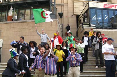 למרות שכל קשר בין ישראל למונדיאל הוא מקרי בהחלט, אי אפשר לא לספר על האירועים מנקודת מבטו של האוהד הישראלי הממוצע. מצד אחד, היה בי רצון עז להתהדר בדגל ישראל שהכינותי מראש, בזמן שאוהדים מכל המדינות מנופפים בדגליהם על מדרגות הכיכר. מצד שני, הרגשתי כמו הילד הדחוי שמתעקש להשתחל למסיבה אליה לא הוזמן (ובמקרה הזה באשמתו המלאה). לבסוף יצר הגאווה הלאומית גבר, ומצאתי עצמי מנופף בדגל ישראל לצד הדגל האלג'ירי.