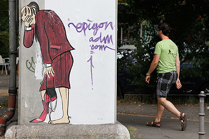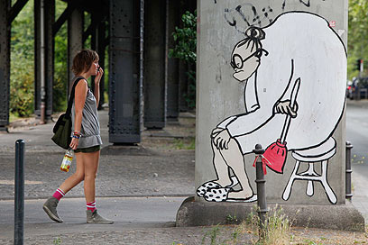 מי מכיר את האיש שבקיר? גרפיטי בקרויצברג (צילום: AFP)