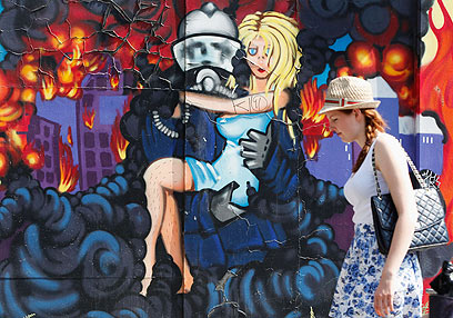 מי מפנה גב למי? ציור קיר בקרויצברג (צילום: AFP)