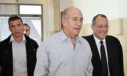 אהוד אולמרט ועו"ד אלי זוהר בבית המשפט, היום (צילום: נועם מושקוביץ)