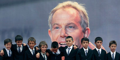ראש ממשלת בריטניה לשעבר, טוני בלייר, מורגל בקבלות פנים במהלך ביקוריו בכל רחבי הגלובוס, אבל קבלת פנים כמו זו שארגנו לו בקוסובו - ספק אם הוא זוכר: תשעה ילדים ונערים העונים לשם "טוני בלייר" המתינו אתמול (יום ו') לשליח הקוורטט למזה"ת עם הגעתו לבירה פרישטינה והובילו אותו לטקס מרגש שכולו הבעת תודה למנהיג הבריטי.