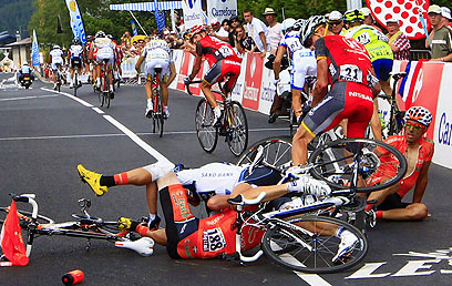 ארמסטרונג והנפילה. איבד סיכוי לפודיום השנה (AFP)