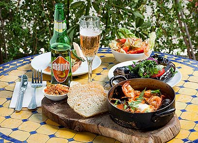 6. מוסיפים את תערובת פירות הים לשקשוקה, שוברים את הביצים לתוך המחבת, מכסים ומבשלים כ-5 דקות (או יותר אם אוהבים את הביצים מבושלות לגמרי). מגישים עם לחם טרי טרי ופלפלים חריפים קצוצים מתובלים בשמן זית ומיץ לימון.