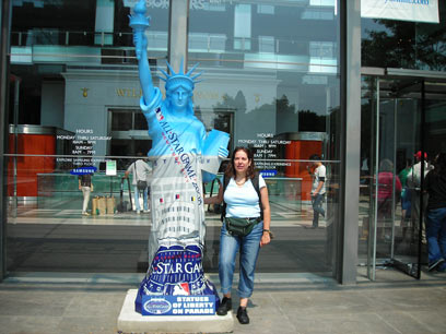 יעל עם דגם של פסל החירות. תזכורת לחירות שלנו לבחור, ללכת אחרי הלב