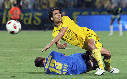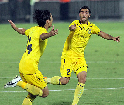ניבאלדו מברך את מדוניאנין לאחר השני של הצהובים (אלי אלגרט)