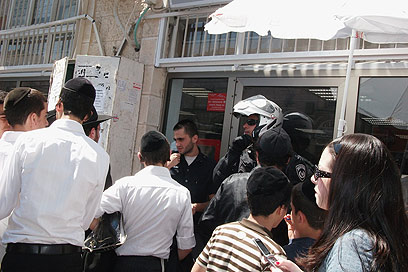 המהומה סביב הסניף, היום בצהריים (צילום: אבי שפירא, חדשות 24)