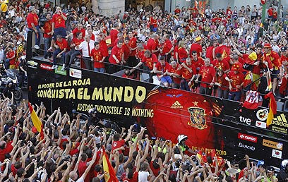 ספרד חוגגת אליפות עולם. ואן חאל יאמן אותה? (צילום: AP)