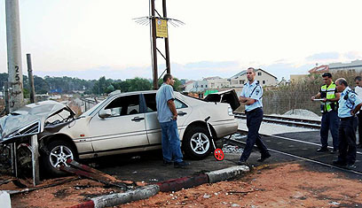 הרכב המרוסק במחסום הרכבת, בפאתי באר-יעקב (צילום: אבי מועלם)