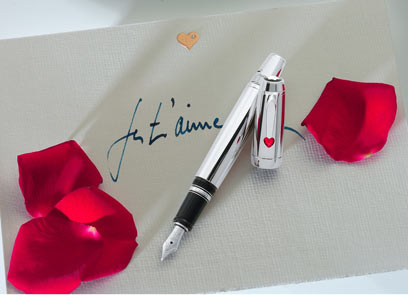 מה מציעים: לכתוב את מכתבי האהבה בסטייל ומציג את BOHEME J'TAIME, סדרת עטים המעוטרים בזהב לבן או צהוב ומצוידים בציפורן מהודרת באבן אודם שלוטשה בצורת לב.