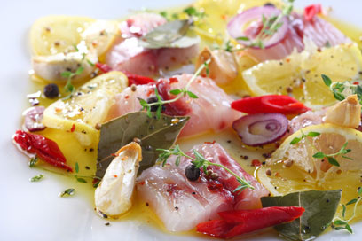 - שמים בקערה את הדגים, הלימונים ושאר המרכיבים. מערבבים, מניחים בתוך צנצנת בעלת מכסה הדוק תואם ומכסים בשמן זית.