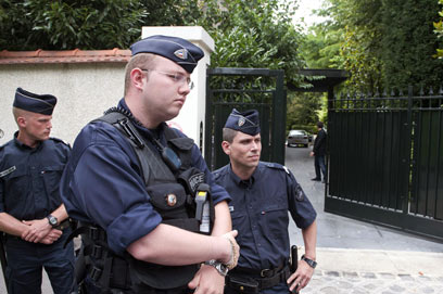 שוטרים מול בית בטנקור, היום (צילום: AFP)