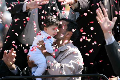 מחלק כסף לילדים. מחמוד אחמדינג'אד (צילום: AP)