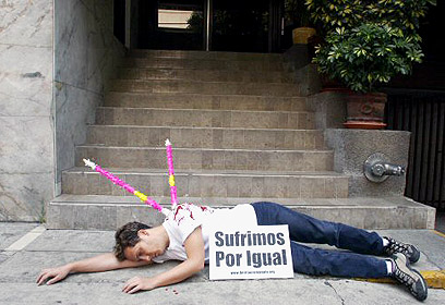מתנגדי קרבות השוורים: מנהג ברברי (צילום: AFP)
