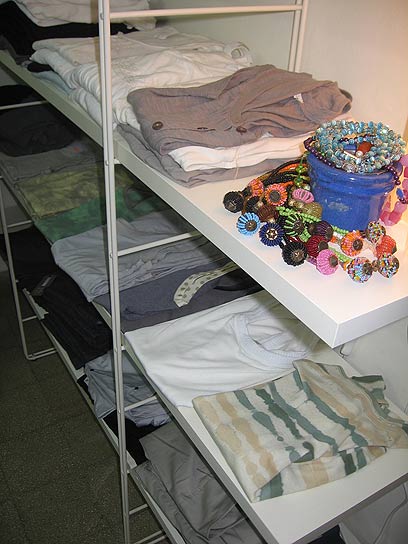 עיצוב וסדר: החנות קטנה ויכולה להכיל עד שלוש נשים. בסך הכל ישנם שלושה קולבים ארוכים, פרגוד מדידה ומדפים עם פרטי לבוש מקופלים שהופכים במחי יד לשדה קרב אופנתי.
