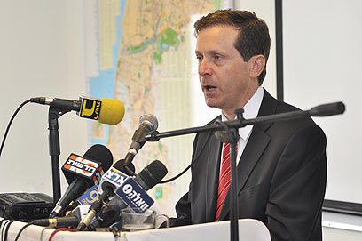 מספק הסברים. הרצוג במסיבת העיתונאים (צילום: מתי אלמליח)