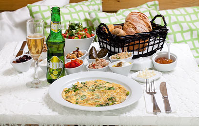 ליד כל זה תקבלו גם סלט ירקות טריים שנקצץ על המקום, סלסלה של לחמים ומאפים חמים וטריים שנאפים במקום,