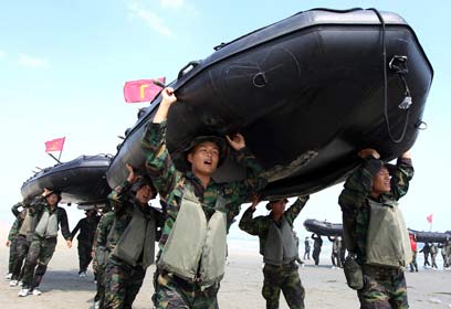 אנשי חיל הים בתרגיל בדרום קוריאה, היום (צילום: רויטרס)