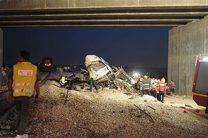 המיניבוס והרכבת בזירת התאונה (צילום: אבי רוקח)