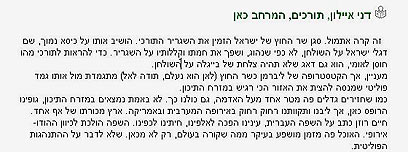 בסוף דבריו, הוסיף חדד קישור לעצומה הקוראת לפיטוריו של איילון, שאנשיו פעלו אמש כדי לנפק לו במהירות תעודות מעבר ומסמכים מזהים זמניים שישמשו אותו בחזרתו מאוסטריה חזרה לישראל.