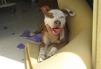 לפני כארבעה חודשים נגנבה פומה, כלבת אמסטף פצועה שננטשה על ידי בעליה ביישוב קדימה, מביתה של הווטרינרית שטיפלה בה. בעקבות פרסום הכתבה ב-ynet ופעילות של יחידת המתנדבים "משמר בעלי חיים" ומשטרת נתניה, הושבה הכלבה למרפאה וכעת היא מחפשת בית מאמץ