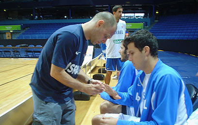 הנבחרת מתאמנת באולם בפינלנד (מוטי אקסמיט, דובר איגוד הכדורסל)