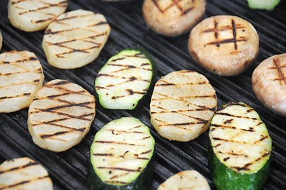 - הירקות: מחממים מחבת פסים כבדה עד לרמת עישון ומניחים את תפוחי האדמה. צולים לפחות 10 דקות יותר משאר הירקות. מומלץ, לאחר כמה דקות צלייה, להזיז אותם לאלכסון כ-30 מעלות. לאחר כמה דקות נוספות הופכים את תפוחי האדמה וחוזרים על דרך הצלייה.
