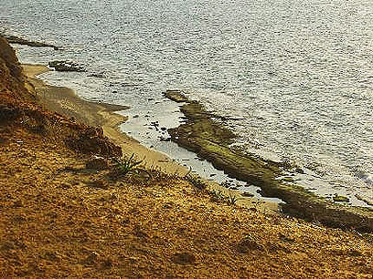 חוף השרון: מבט מהצוק הנעלם אל אוהלי האצבעות
