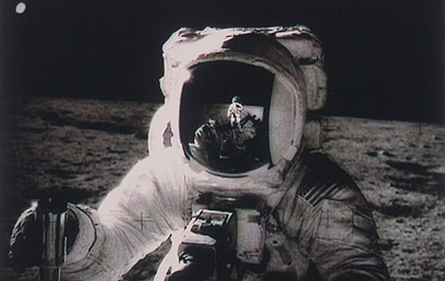 ארמסטרונג על הירח. פנס התאורה בפינה השמאלית למעלה (צילום: ערוץ 8)