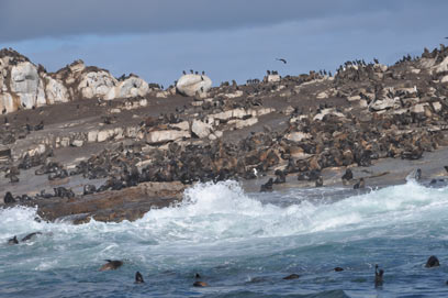 מדובר כמובן בצלילה בתוך כלוב, ואין אפשרות לצלול באופן חופשי עם הכריש הלבן, לפחות לא בדרום אפריקה. יציאה לים עם כריס, מומחה לחיה האימתנית, מחפה על המגבלה. הבוקר התחיל בספינה קטנה שקיפצה בין הגלים הגבוהים, מתגברת על הרוחות החזקות ועל הגשמים. עשינו את דרכנו לאי כלבי הים (Seal Island), פיסת יבשה קטנטנה, המהווה מקום הזדווגות ורבייה ללמעלה מ-70 אלף כלבי ים (ואריות ים) אפריקניים ולכ-100 אלף עופות ים.