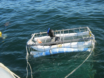 אין אפשרות לצלול באופן חופשי. כלוב צלילה (צילומים: שלומי שוורצברג)
