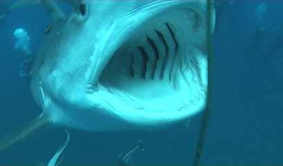 לאחר שהפנמתי בהצלחה את כללי ההתנהגות, לא נותר לי אלא להביט באורגיה המטורפת של הכרישים החביבים (יחסית) שצבאו בפראיות על הסעודה שהסתתרה בתוף מכונת הכביסה. השלווה הופרה במהרה, עם זאת, כשהגיעו הכרישים השליטים, הלא הם כרישי הנמר (Tiger Shark). הם מלאי הוד ואכזריות , ואורכם כארבע וחצי מטרים. כל שאר הכרישים פינו את הדרך לכרישי הנמר, שתקפו בטירוף חושים את הפיתיון ואיימו לנתקו מהסירה. זה היה מחזה מדהים, כשבין מתקפה אחת לשנייה בדק כריש הנמר בסקרנות את הצוללנים.