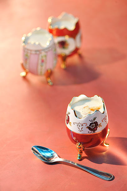 - מרתיחים את הציר עם כל התבלינים. מוסיפים את מיץ הלימון, טורפים היטב ומוסיפים באיטיות יוגורט.
