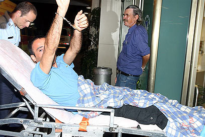 אינג'אז האזוק מגיע לבית החולים איכילוב. נפצע קל (צילום: עופר עמרם)