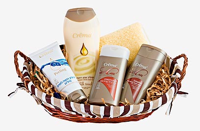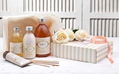 בין המארזים: מארז תענוגות: מארז מעוצב ובו סבון שמן נוזלי, קרם גוף וקרם ידיים, נר וסבון מוצק.