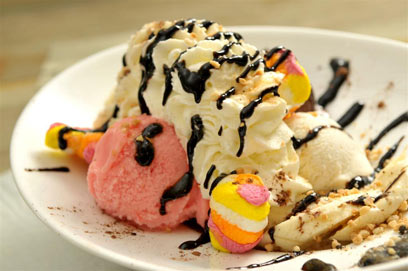- מכסים את כדורי הגלידה והבננה החצויה בקצפת.