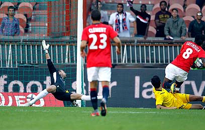 ברק יצחקי וממאדו סאקו נלחמים על הכדור (AFP)