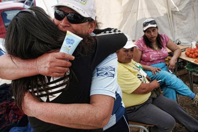 חיבוקים מחוץ למכרה. "זה ייקח זמן, אבל הסוף יהיה טוב" (צילום: AFP)