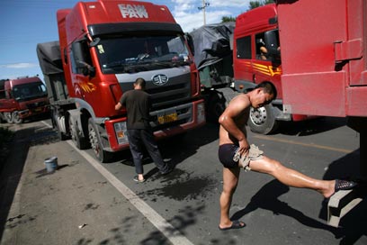 מקלחת מאולתרת בכביש "בייג'ינג-טיבט" (צילום: רויטרס)