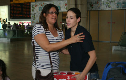 אריאנה רבי, אשתו של המאמן אלי, מקבלת את דורון בנתב"ג (אורן אהרוני)