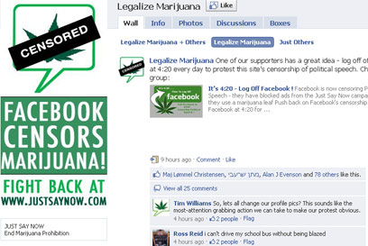 פרסומת לקבוצה שקוראת להפוך את השימוש במריחואנה לחוקי צונזרה על ידי הנהלת פייסבוק, משום שהיא מכילה "מוצר עישון" שאסור להצגה - על פי תנאי השימוש ברשת החברתית