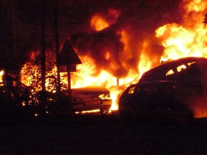 מכוניות הועלו באש (צילום: באדיבות דוברות כבאות והצלה ירושלים)