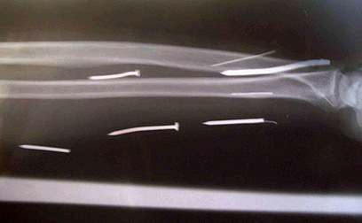 צילום רנטגן של אחת מזרועותיה של האשה (צילום: AFP)