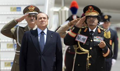 ברלוסקוני וקדאפי בשנה שעברה. ביקורת קשה (צילום: רויטרס)